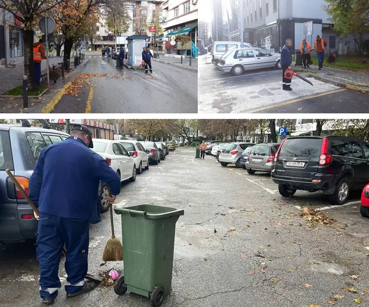 Екипите од двете претпријатија утрово излегоа на терен, односно на зона Ц80 кај зоолошката градина, зона Ц81 кај Град Скопје, зона А01 спроти главна пошта, зона А05 и А06 на ул. „Максим Горки“ и зона Б6 кај СУГС „Јосип Броз“. Се чисти сметот и паднатите лисја од овие паркиралишта, а наредните денови ќе се чистат сите останати паркиралишта во и околу општина Центар, според акциски план и распоред.